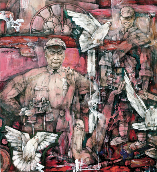 “就这个问题,我没少跟青年朋友‘吵架’——我说,你心里的小故事,诸如我爱你、你不爱我的故事,大家都有,但关键是我们的作品都只有这么小,你的故事如何与老百姓产生共鸣?我们对生活的切入点到底在哪儿。我在想,在如今这个个性发挥得那么充分的年代,我们是不是回头想想共性的东西。”施大畏希望艺术家能跳出小情感的表达,多一些人文关怀的眼光。