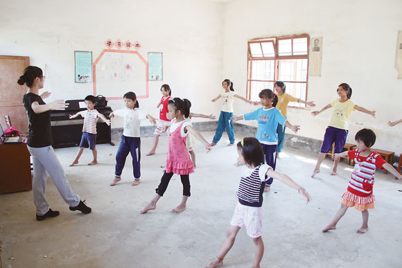广东省文联文艺支教老师辅导孩子们舞蹈练习