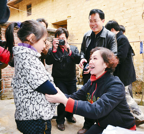 广东省文联党组书记、专职副主席白洁当听到贫困户的孩子叶文心小朋友说“喜欢舞蹈”,非常高兴。