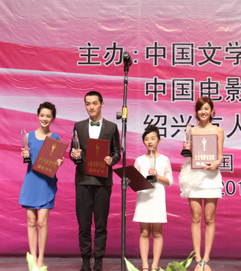 胡歌、李沁、张子萱等最佳新人提名者接受奖杯
