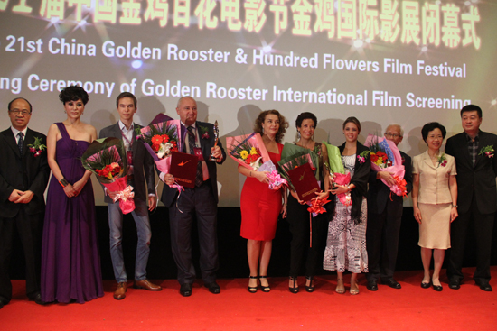 9月28日晚,第21届中国金鸡百花电影节“金鸡国际影展”闭幕,中国影协主席李前宽,中国影协分党组书记、驻会副主席康健民,以及许柏林、王文序、胡子光、尹永杰、谢力等中国影协、绍兴市委市政府领导出席了隆重的闭幕式。俄罗斯影片《同一场战争》、古巴影片《然而》获最受观众喜爱的外国影片奖;韩国影片《断剑》的导演郑智泳、新西兰影片《爱情鸟》的导演保罗·莫菲获得最受观众喜爱的外国导演奖;德国影片《化敌为友》男主角理查德·隆泽斯基、波兰影片《明天会更好》男主角阿列克·雷巴获最受观众喜爱的外国男演员奖;罗马尼亚影片《弗朗西斯卡》女主角莫妮卡·布勒迪亚努、奥地利影片《另一种人生》女主角乌尔苏拉·斯特劳斯获得最受观众喜爱的外国女演员奖。李前宽代表中国影协宣布本届“金鸡国际影展”圆满闭幕,他表示,这次影展进一步拉近了中国电影人和外国电影人之间的距离,让中外优秀电影作品在一个极具高度的平台上获得了深入而广泛的交流,为中国电影未来的发展提供了有益的帮助和支持。