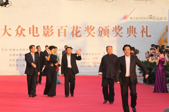 中国文联副主席、中国影协副主席奚美娟以及著名表演艺术家祝希娟等走过红毯