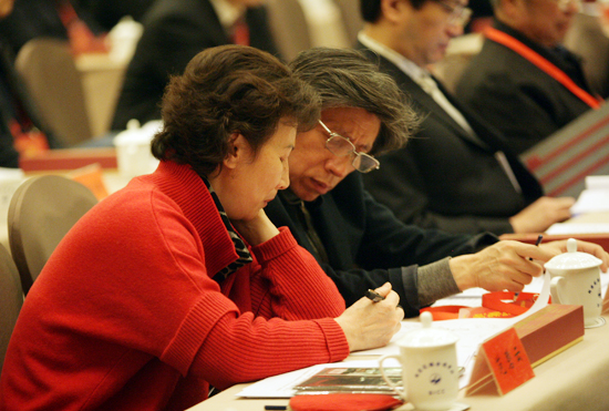3月1日,中国文联第九届全国委员会第二次会议在京召开。图为范碧云、范迪安姐弟出席会议。中国文联网 孟祥宁 摄