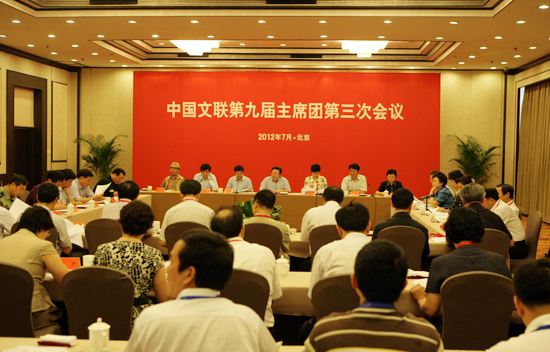 7月5日,中国文联第九届全国委员会第三次会议在京召开。图为中国文联第九届主席团第三次会议现场。中国文艺网 刘刈 摄