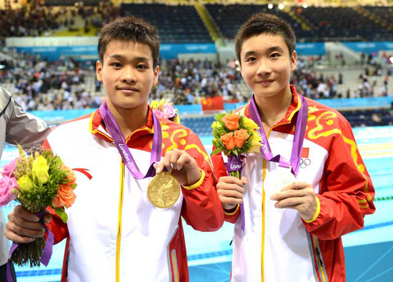 人民网伦敦7月30日电(记者 王霞光摄影报道)7月30日,中国选手曹缘/张雁全夺得伦敦奥运会男子双人10米跳台冠军。二、三名分别被墨西哥和美国获得。英国组合戴利/沃特菲尔德一度保持领先,但在第四跳出现失误,痛失好局位列第四。