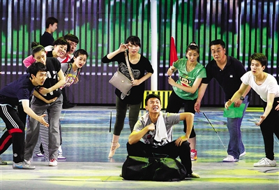 “如果说,观众看了这台演出什么反应,我想是让北京人自豪,外地人羡慕,外国人惊讶。”前天,在国家体育馆大型情景音舞诗画《天安门》的排练现场,导演陈维亚自信满满地说。虽然前天联排只展示了《天安门》的小部分情节,服装道具也不齐全,但舞台气势和高科技效果已初现端倪。400多名群众演员的表演更是让现场仿佛成了一个百姓大联欢。陈维亚说,此次演出将强调生活气息,不以明星为主打。