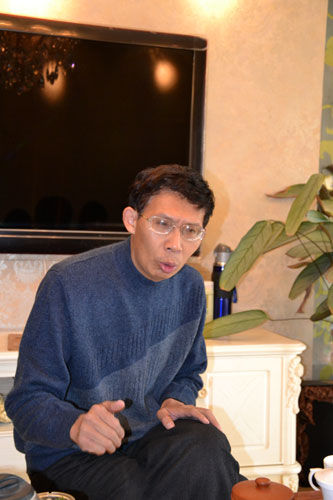 纪连海接受香港文汇报访问——香港文汇报记者 王晓雪 摄