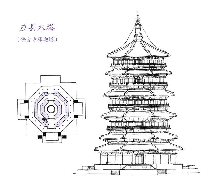 应县木塔的设计,大胆继承了汉、唐以来富有民族特点的重楼形式,充分利用传统建筑技巧,广泛采用斗拱结构,全塔共用 斗拱54种,每个斗拱都有一定的组合形式,有的将梁、坊、柱结成一个整体,每层都形成了一个八边形中空结构层。设计科学严密,构造完美,巧夺天工,是一座既有民族风格、民族特点,又符合宗教要求的建筑,在中国古代建筑艺术中可以说达到了最高水平,即使现在也有较高的研究价值。