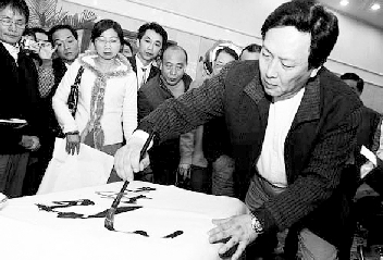 唐国强的书法有相当的造诣,比如在电视剧《长征》中扮演毛泽东主席写草书七律《长征》,既不找替身,也不切换镜头,亲自上阵,把毛泽东挥笔做诗演绎得惟妙惟肖,观众在《长征》中就曾经欣赏过他的书法。这是否就是主办方把自己列入前十名的理由,唐国强分析,收藏爱好和爱好收藏是两回事,因为自己演过一些观众认可、喜欢的形象,所以一些人出于这方面的原因愿意收藏自己的作品,可能就是收藏家协会选择自己的一个理由。但唐国强再次强调,现在已经不再写东西了,更多的是看,观赏、揣摩佳作,实在称不上什么书法家。