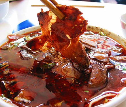 灯影牛肉是川菜中麻辣味浓厚的冷菜名肴,它和郫县豆瓣、涪陵榨菜、永川豆豉并称为“四大特产”。