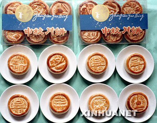 这是1985年中秋节前夕北京生产的“八景”月饼,每只月饼上有“北京”两字和一种风景图案(资料照片)。 新华社发