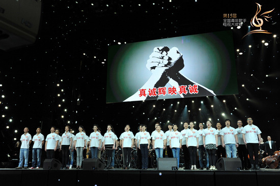 芦山地震发生后,大赛组委会心系灾区,不仅组织选手参与录制了赈灾公益MV,更决定停赛一周,以表对在地震中遇难同胞的沉痛哀悼。复播首日,节目组特地在比赛开始前增设简短而有力的纪念祈福环节,温暖动人、凝聚力量。