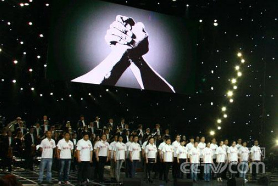 今晚开赛前,以交响乐演奏和歌曲演绎的形式,共同为灾区同胞助威打气。交响乐团演奏了《红旗颂》,而目前青歌赛晋级选手和在场观众现场起立共同演唱了《我们众志成城》。表达了对灾后重建的信心与支持,为受灾同胞助威打气,更坚定了中国人民在灾难面前风雨同舟、众志成城的决心!