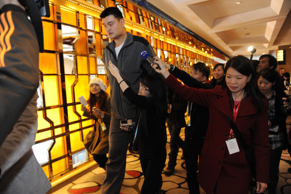 2013年3月4日,北京,全国政协委员姚明参加全国政协十二届一次会议体育界讨论会,并作了首次发言。姚明第一次发言虽然略显拘谨,但思路清晰、表达准确。