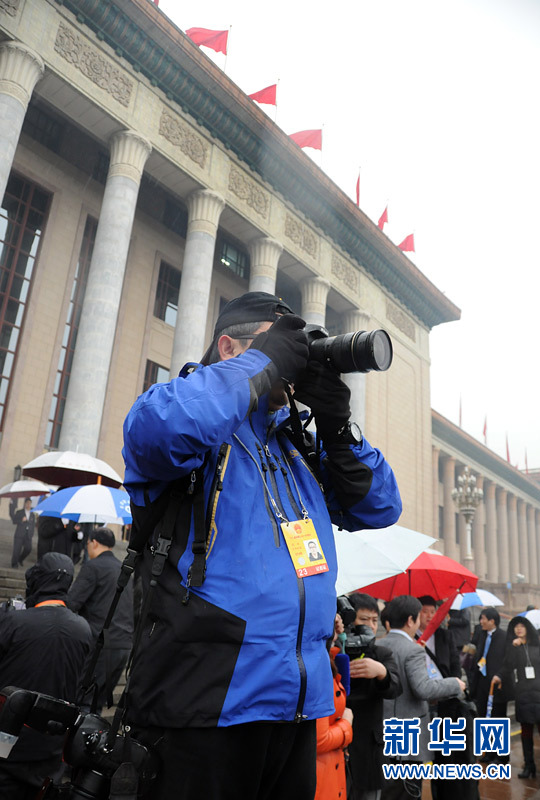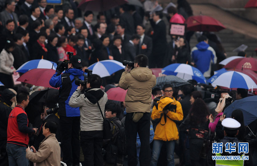 3月12日, 全国政协十二届一次会议在人民大会堂举行闭幕会。当日,一场春雨“不期而至”,为人民大会堂前增添了许多独特的“风景”。新华网 翟子赫 摄
