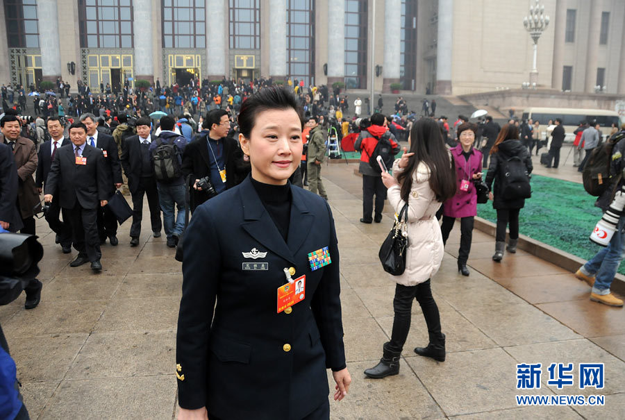 3月12日, 全国政协十二届一次会议在人民大会堂举行闭幕会。图为大会结束后,全国政协委员宋祖英离开大会堂。新华网 翟子赫 摄