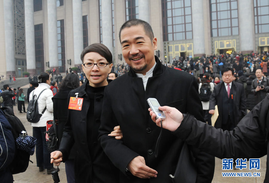 3月12日, 全国政协十二届一次会议在人民大会堂举行闭幕会。图为大会结束后,全国政协委员张国立、宋丹丹离开大会堂。新华网 翟子赫 摄