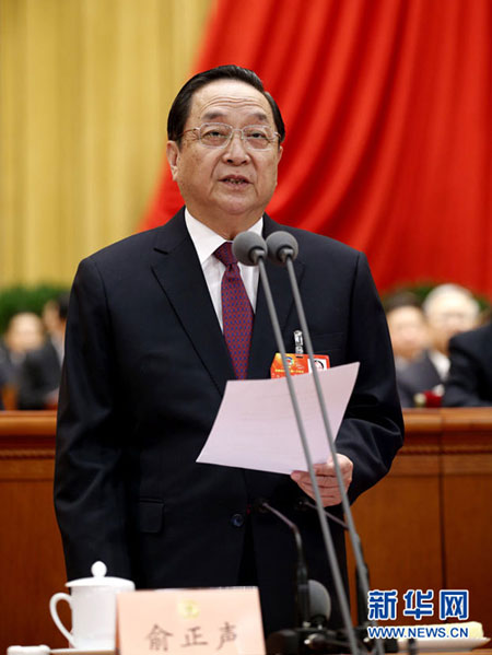 3月3日,中国人民政治协商会议第十二届全国委员会第一次会议在北京人民大会堂开幕。俞正声主持开幕会。 新华社记者鞠鹏摄