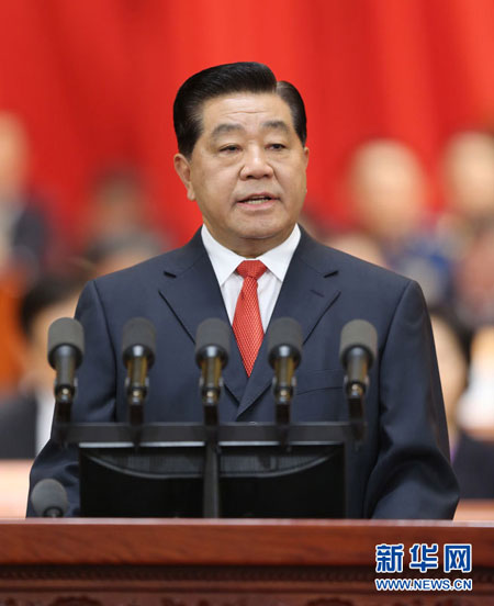 3月3日,中国人民政治协商会议第十二届全国委员会第一次会议在北京人民大会堂开幕。贾庆林代表政协第十一届全国委员会常务委员会,向大会作工作报告。新华社记者姚大伟摄