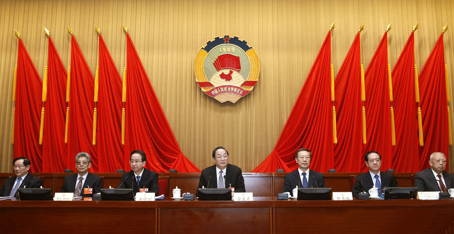 3月11日,全国政协十二届一次会议主席团第三次会议在北京举行。俞正声主持会议。新华社记者 鞠鹏 摄