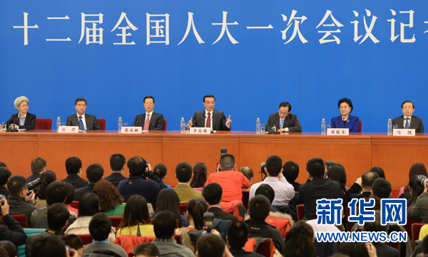 新华社北京3月17日电 国务院总理李克强和副总理张高丽、刘延东、汪洋、马凯,17日上午应十二届全国人大一次会议新闻发言人傅莹的邀请,与采访两会的中外记者见面,并回答记者的提问。