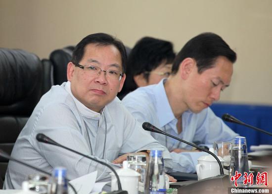 3月5日,新当选的全国人大代表、香港著名歌手张明敏参加十二届全国人大一次会议香港代表团讨论。张明敏于1984年春晚演唱《我的中国心》而闻名。中新社发 陈小愿 摄