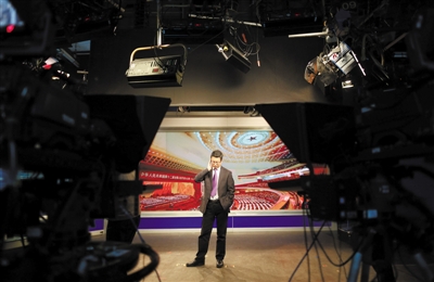 3月7日21点23分,《两会1+1》开播前,白岩松在沉思。对他来说,《两会1+1》最大的挑战是,整个播出过程没有文稿,自己一直面对镜头站着,现场发挥。