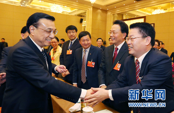 3月4日,中共中央政治局常委、国务院副总理李克强看望出席全国政协十二届一次会议的经济、农业界委员并参加联组会。 新华社记者 姚大伟 摄