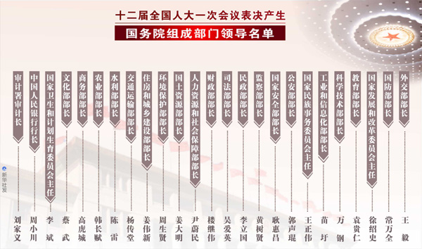 图表:十二届全国人大一次会议表决产生国务院组成部门领导名单 新华社发