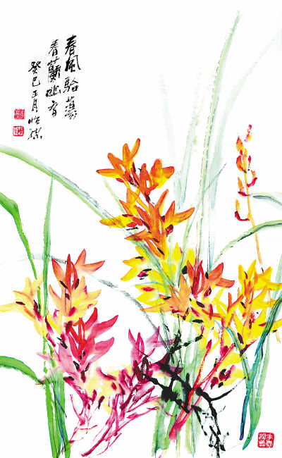 春风骀荡 春兰幽香(中国画)