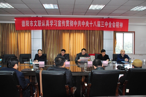 11月15日,德阳市文联召开会议,专题学习贯彻宣传十八届三中全会精神。全体机关干部及各协(学)会负责人参加本次会议。市文联主席范小平主持学习会。会议传达了省委宣传部14日下午召开的电视会议精神,传达了市委常委、市委宣部长杨建明在宣传口学习“十八届三中全会精神”会议上讲话精神。