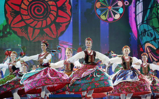 波兰玛祖夫舍国家歌舞团在开幕式上演出舞蹈《卢布林舞》