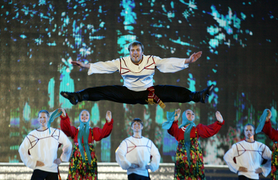 俄罗斯彼特尼茨基国家模范艺术团在开幕式上演出歌舞《欢乐的早晨》