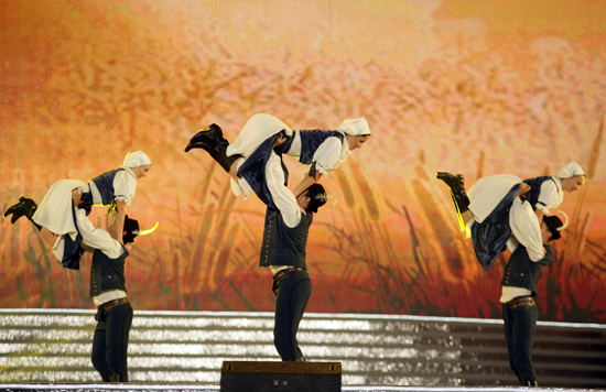 捷克萨拉吉卡民间舞团在开幕式上演出舞蹈《米亚瓦民间舞蹈》