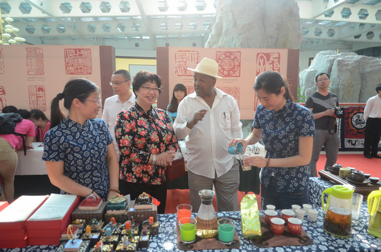 交流团学员观赏中国茶艺 单鸣 摄
