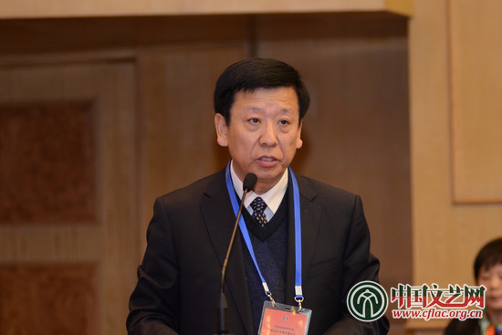 中国影协分党组副书记、第八届秘书长许柏林作《关于修改<中国电影家协会章程>(草案)的说明》 中国文艺网 单鸣 摄