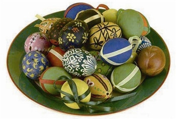 在一些地方,于清明头一夜,把鸡鸭卵煎熟,染成蓝黄杂色,在卵壳上加以雕镂成画,作为冷食礼品赠送。据说吃画卵,在隋唐时盛行全国。