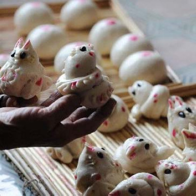 做面花是陕北妇女的拿手好戏。她们用自己灵巧的双手,能将发了酵的白面捏成各种形状的面花。工具只是梳子、剪子、锥子、镊子等日用品,辅料则是红豆、黑豆、花椒子和食用色素。蒸出来的面花栩栩如生,尤如艺术珍品,令人爱不释手,舍不得马上吃掉。