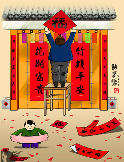 春联属于楹联的一种,是一种独特的文学形式。它以工整、对偶、简洁、精巧的文字描绘时代背景,抒发美好愿望,是中国的文学形式。每逢春节,无论城市还是农村,家家户户都要精选一副大红春联贴于门上,为春节增加喜庆气氛。