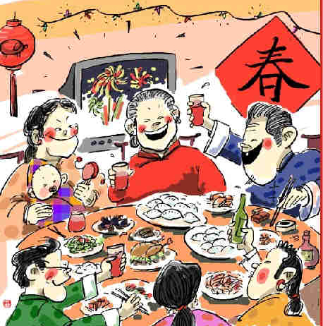 中国民间在除夕有守岁的习惯。守岁是从吃年夜饭开始,一夜不睡,以迎候新年的到来。这顿年夜饭要慢慢地吃,从掌灯时分入席,有的人家一直要吃到深夜。根据宗懔《荆楚岁时记》的记载,至少在南北朝时已有吃年夜饭的习俗。守岁的习俗,既有对如水逝去的岁月含惜别留恋之情,又有对来临的新年寄以美好希望之意。