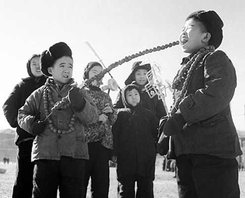1961年春节,北京逛厂甸庙会的孩子们最感兴趣的是大串糖葫芦。