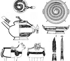 进入青铜时代以后,在华南越系、濮系等“南蛮”系统民族文化中,装饰蟠螭纹、蛇纹、蛙纹、鸟纹等动物纹样的青铜器成为土著青铜文化区别于“商周文化”的重要特点。在苏南、浙北、皖南的吴越文化区,青铜文化的造型组合和纹饰很大程度上受到中原“商周文化”的直接影响,但周代以来逐步占据主导地位的各式几何纹和蛇、鸟、鱼等写实的动物纹样,成为“吴越青铜文化”的重要特点。在皖南,繁昌汤家山的蟠蛇纹纽盖盉、蟠蛇纹矛,汤家山与青阳庙前汪村的鱼蛇纹圈足盘,芜湖的牺首蛇纹尊等,都是几乎写实的蛇形象,与中原北方史前玉器、商周青铜器等常见的兽首、鱼鳞身、带鹰爪足并被人格化的华夏“龙”是完全不同的⑨。在江苏六合程桥、镇江王家山、淮阴高庄等地先后发现的一批东周时期吴国贵族墓葬中,还发现了一组精美、繁缛的刻纹铜盘、鉴、匜、盆、薰炉盖、箅形器等器物,蟠蛇纹、爬行四脚蛇(蜥蜴)纹是其中的主题纹饰。类似的蛇纹也见于福建武夷山闽越王城的一件铜铎舞面上。(来源:《南方文物》2010年2期第89~102页/作者:吴春明 王樱)