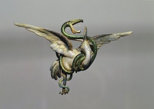 用绿松石,红宝石以及钻石加工而成的蛇形项链,19世纪。