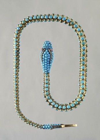 用绿松石,红宝石以及钻石加工而成的蛇形项链,19世纪。