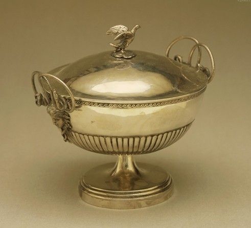 装饰有美杜莎头像及蛇形把手的银质汤盘,银器,19世纪