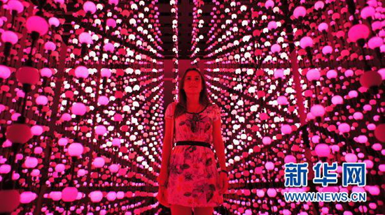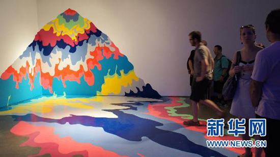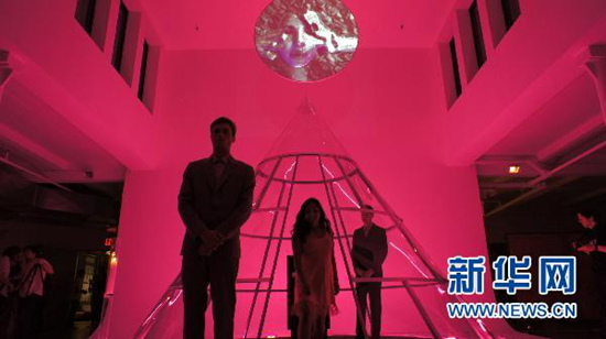 6月26日,观众在美国纽约的一个画廊参观“创想计划”艺术活动中的作品。由传媒公司VICE与英特尔公司共同策划的一项将各种艺术形态和互动媒体相结合的大型展览活动——“创想计划”当日在纽约曼哈顿举行首发会。“创想计划”旨在把全球艺术人才和跨媒介创意聚集到一起,为全球青年人献上一场艺术盛宴。纽约是此次“创想计划”全球巡展活动的第一站,来自7个国家的80多位艺术家带着他们的作品参加了此次活动。“创想计划”全球巡展将于9月17日到达北京。