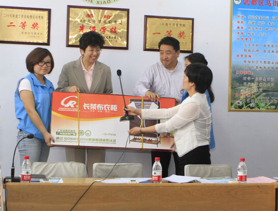 赵实代表中国文联向文艺支教志愿者赠送慰问品 中国文艺网 白伟 摄