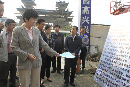 观看项目介绍展板。中国文艺网 白伟 摄