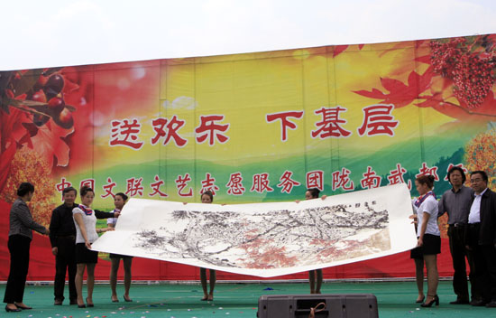 书画家向陇南市赠送书画作品。中国文艺网 白伟 摄
