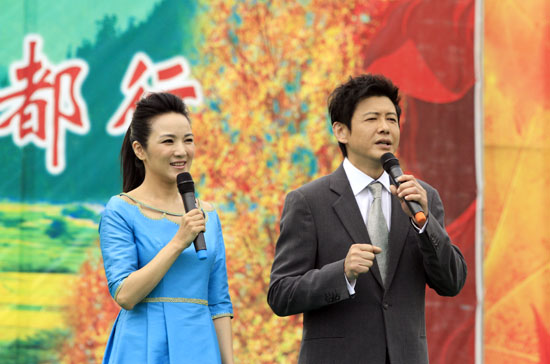 著名主持人程前、管彤主持慰问演出。中国文艺网 白伟 摄